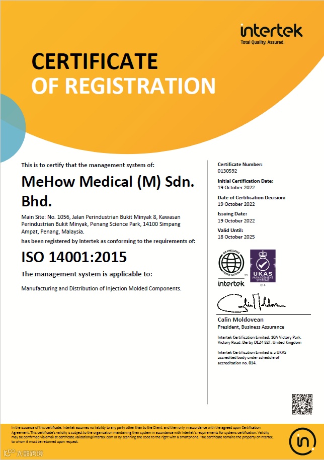 通过“ISO9001:2015”质量管理体系认证,标志着美好医疗(马来西亚)有限公司的质量管理步入系统化、标准化、规范化的新阶段。ISO 9001是国际上通用的质量管理体系,也为总体管理体系设立了标准。美好医疗(马来西亚)有限公司通过此项体系认证,表明在各项管理系统整合上已经符合国际标准,也表明企业能持续稳定地向客户提供符合预期和满意的合格产品。