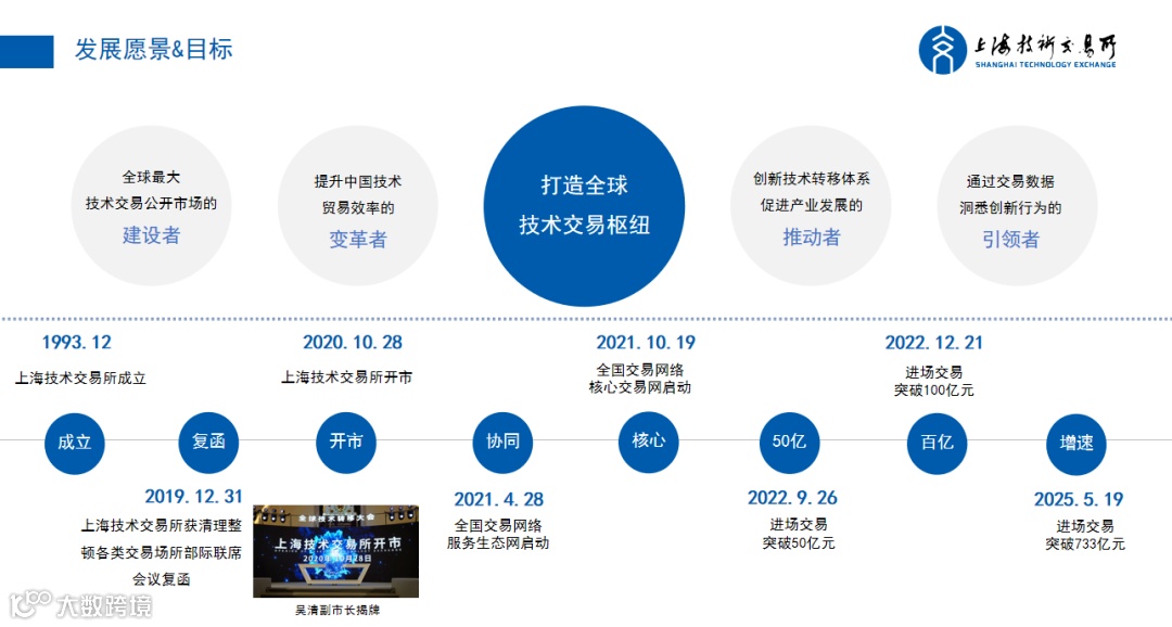 上海技术交易所是我国技术要素市场化配置的核心枢纽,拥有深厚的政策积淀与权威资质,连续被中共中央、国务院《关于构建更加完善的要素市场化配置体制机制的意见》《建设高标准市场体系行动方案》等重磅文件明确列为“技术要素市场化配置重要载体”和“全国性技术交易市场建设主体”。截至2025年5月,累计实现进场交易额突破733亿元,构建覆盖全国25家交易场所的“核心交易网”和连接超60个地区市场的“服务生态网”。旗下产业大数据平台整合全国科创资源与企业运营数据,通过AI算法为政府及园区提供产业链强链补链、精准招商决策支持。