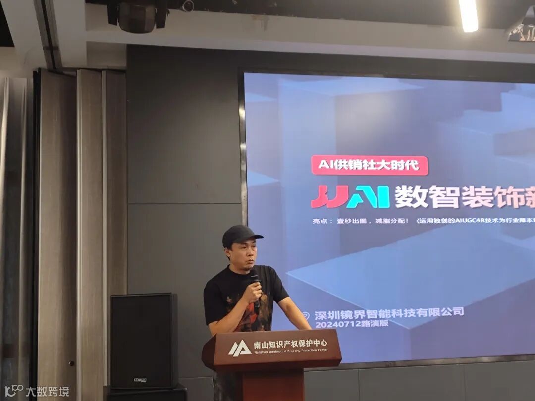 第五个分享的是深圳镜界智能科技有限公司的“镜界AIGC助力装饰企业打造数字化新生态”项目。深圳镜界智能科技有限公司:致力于帮助装修装饰企业打造自己的数字新生态,用AIGC的技术,帮装饰企业打造自己的IP,三分钟可拥有自己的小程序,方便复制裂变,转发,帮助装饰企业打造自己的数字新生态。进而形成自己的数字化知识产权等等。更高效,便捷的传播,可实现用户快速找到商家,包括联系方式,店铺地址,优秀案例等等。帮助终端用户有效避开盲盒,因为在小程序里面有多套案例可以选择,总有一款是自己喜欢的风格,降低试错成本,整个环节是免费的。镜界AI:目前已实现一秒出多套效果图,库存10万套户型图,未来将会吸纳更多数据,数据是第一生产力,谁拥有了数据,谁就拥有了未来,镜界AI致力于装修装饰企业数字化转型。