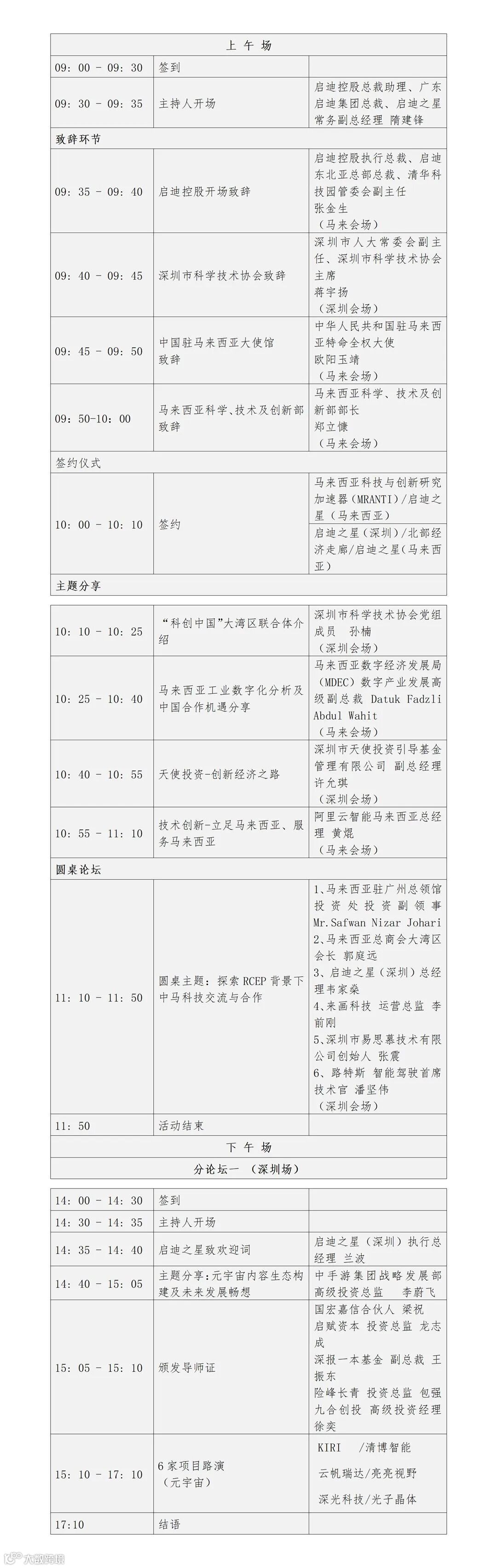 支持单位:广东启迪集团、广东省粤港澳合作促进会、粤港澳湾区科普产业联盟、粤港澳大湾区科技协同创新联盟、深港澳科技联盟、深港科技社团联盟、深港澳天使投资人联盟、深圳市福田区投资推广和企业服务中心、深圳中欧创新中心、深圳中英科技创新中心、马中商务理事会、马来西亚数字经济发展局(MDEC)、东盟智能工业联合会、EntreVestor、中国东盟总商会