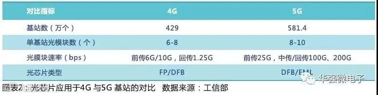 从建设先后顺序来看,先传输,后无线。如果没有传输资源会影响5G的开站进程。5G时代所有传输都是光纤连接,5G除了回传用到光纤,5G引入的大规模天线将导致BBU与RRU之间(CPRI接口)的前传容量大幅增加。如果光缆供应不足,肯定会影响站点间和核心网的连接。中国拥有世界上最多的4G站点,几乎是美国的10倍,不太可能用微波回传的方式。武汉拥有全球最大光纤供应链聚落,包括烽火通信、长飞光纤光缆和光迅科技,华工科技等,占全球光纤光缆生产比重的25%。2018年光迅科技公司以7.1%的市场份额位列全球第四大、国内第一大光通信器件供应商。而由于5G基站需要更多的光纤和升级光纤,5G的光纤需求和光模块需求是4G的2倍以上。