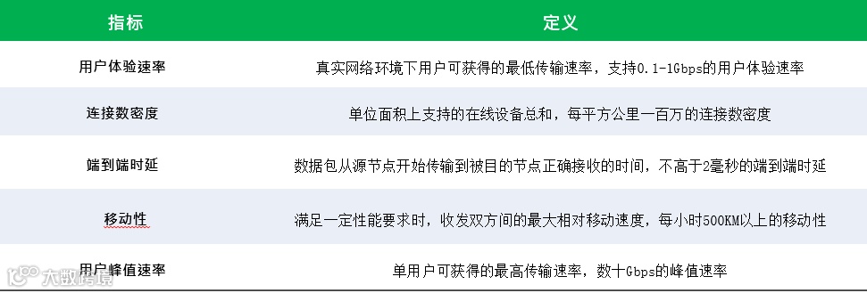 5G关键指标及其定义