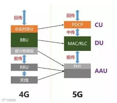 为满足多业务需求,同时根据是否处理实时业务,需要将原有的BBU拆分为CU和 DU。原BBU的非实时部分将分割出来,重新定义为CU(集中单元),负责处理非实 时协议和服务;BBU处理物理层协议和实时服务的功能重新定义为DU(分布单元), 负责处理时延敏感的底层信息。