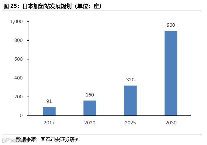 日本一直都以构建氢能社会为国家发展目标,其加氢站密度目前世界排名第一。