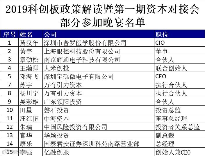 参加此次饭局的除了路演项目以及演讲嘉宾之外,还有众多的投资机构参与。饭桌上,路演项目们与投资机构更近距离接触,投资机构对路演项目更加深入了解,以下为部分参加晚宴名单。