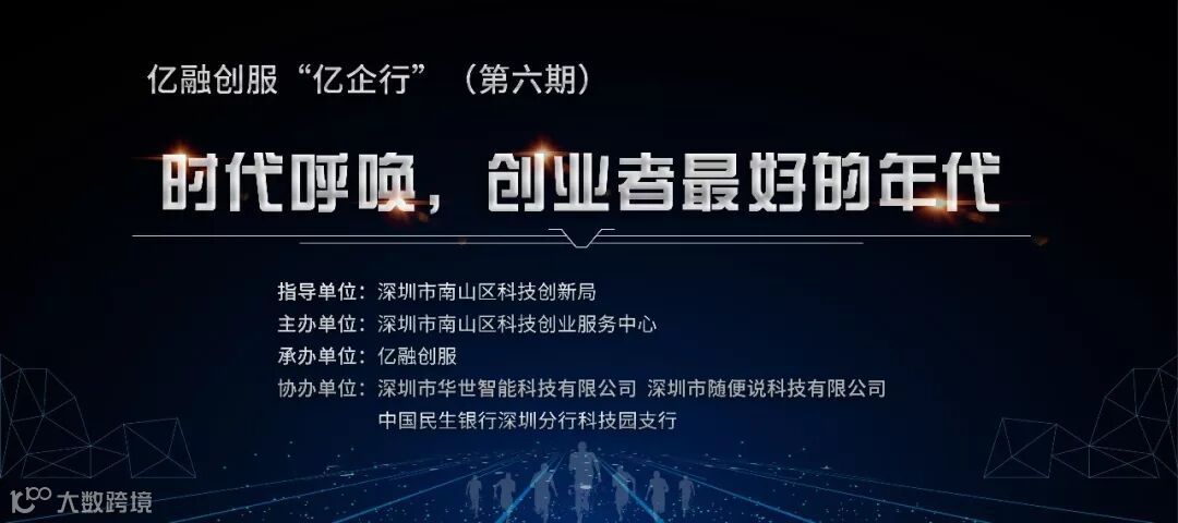 为此,2018年10月12日,由深圳市南山区科技创业服务中心主办,亿融创服承办,深圳市华世智能科技有限公司、深圳市随便说科技有限公司和中国民生银行深圳分行科技园支行协办的【亿融创服“亿企行”第六期——时代呼唤,创业者最好的年代】主题分享。活动现场将围绕“创业路上面临的那些事”进行心路历程分享,从创业初期产品模型搭建,商业模型建立,到启动融资商业计划书的撰写与接洽投资机构等多个维度进行分享与交流,持续思考公司的成长过程中的问题与风险,分享经验、一起交流。