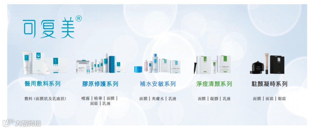 招股书显示,巨子生物的产品管线包括85款在研产品,产品组合则包括105项SKU,涵盖功效性护肤品、医用敷料和功能性食品的八大主要品牌,即可复美、可丽金、可预、可痕、可复平、利妍、欣苷(SKIGIN)以及参苷。可满足术后修护、初老肌肤、易敏感肌、问题肌肤等不同人群多样化的护肤需求。