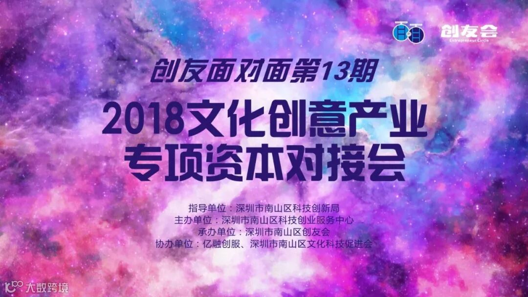 创友会作为华南创业服务市场的唯一一家以创业媒体作为核心业务的创业服务机构,深耕创业服务领域,为了给文化创意领域的创业者和投资人搭建一个良好的互动交流平台,为文化创业项目的发展插上资本的翅膀,特此承办2018文化创意产业专项资本对接会。