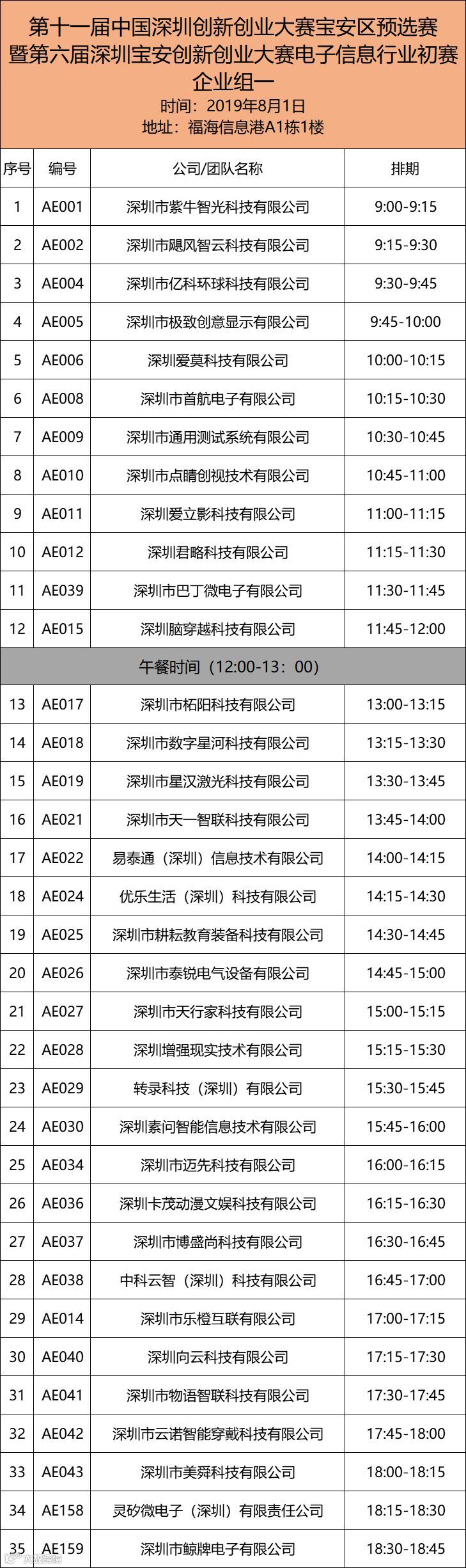 亿融创服第六届宝安创新创业大赛晋级名单已出,此次大赛电子信息行业初选晋级项目共计138家,现定于8月1日-2日,为期两天时间进行现场路演比赛。