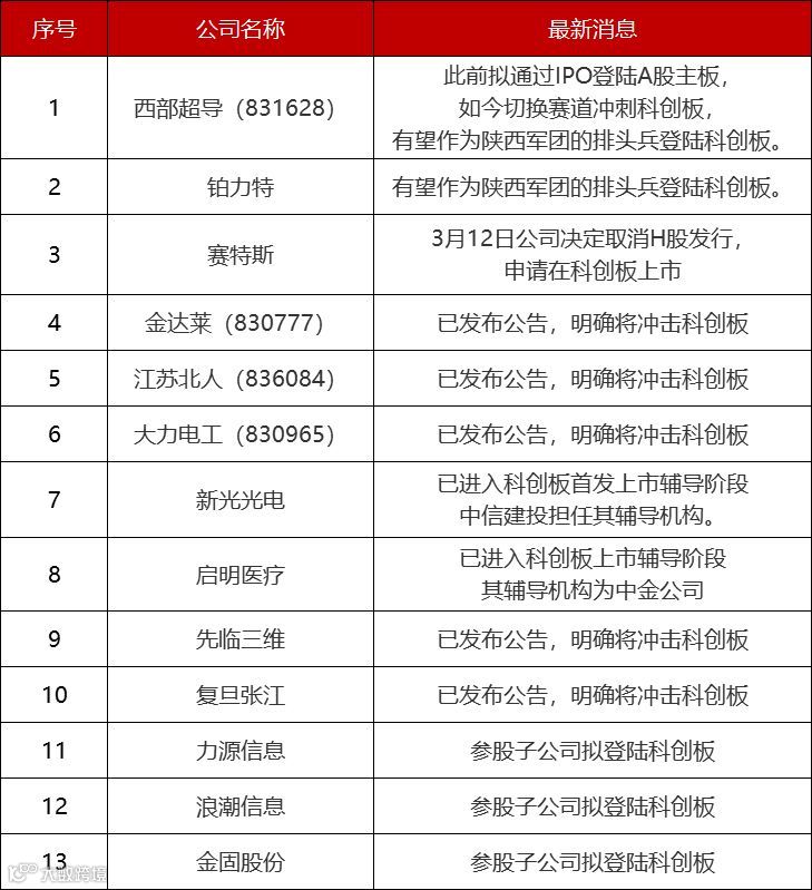 根据已有资料,本文也整理了部分明确宣告冲刺科创板的企业名单,如下图。