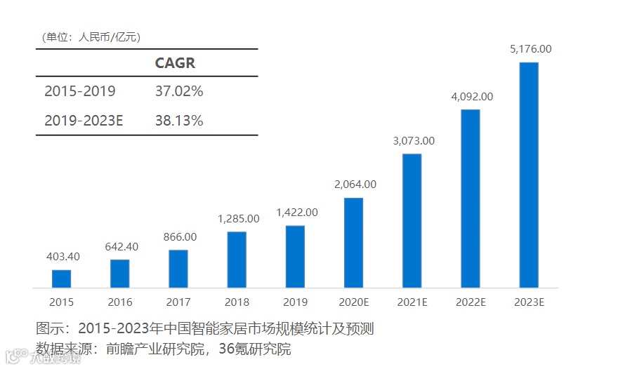 报告指出:2020年中国智能家居市场规模将达2,064亿元,同比增长45.15%,至2023年市场规模将达5,176亿元,行业发展空间巨大。如此强大的市场规模背后,也隐藏着巨大的商机。