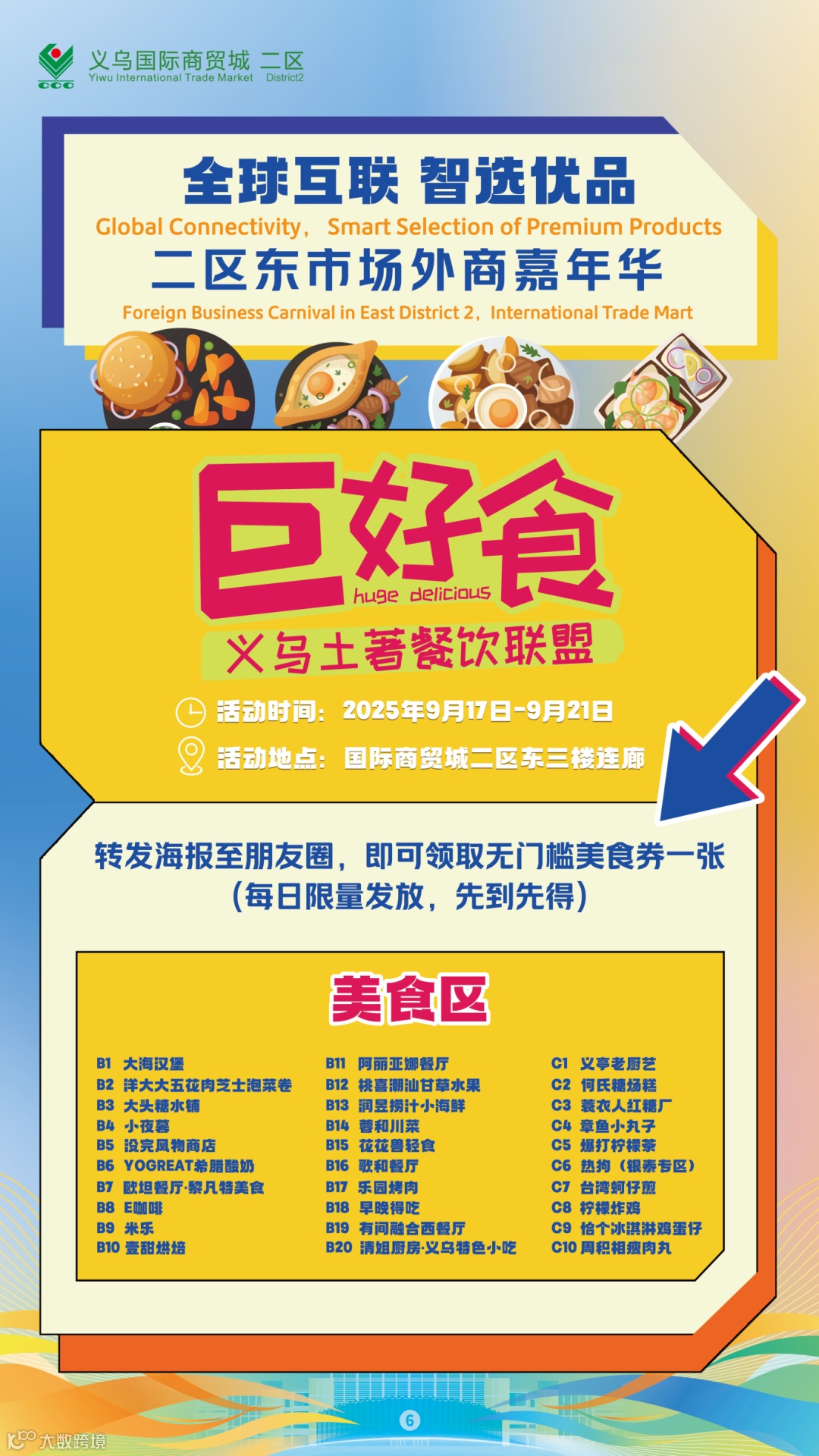 “Huge Delicious Yiwu Indigenous Catering Alliance”,joining hands with 30 internet famous gourmet restaurants.Conducted in the corridor on the third floor east New Energy Market of District 2,“Sweet and Salty Food Festival”.Let you experience the stimulation of different taste buds at once!