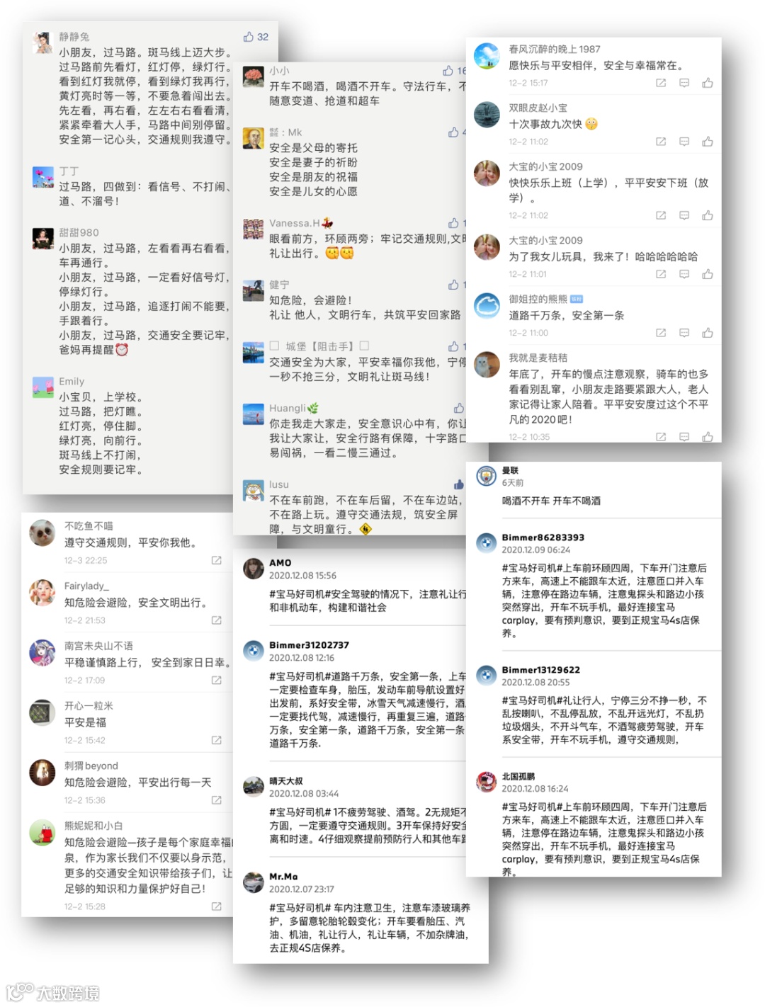 此次活动也吸引了众多宝马君粉丝、广大网友,和宝马车主们的积极参与,大家在不同平台上纷纷秀出自己的安全出行寄语。