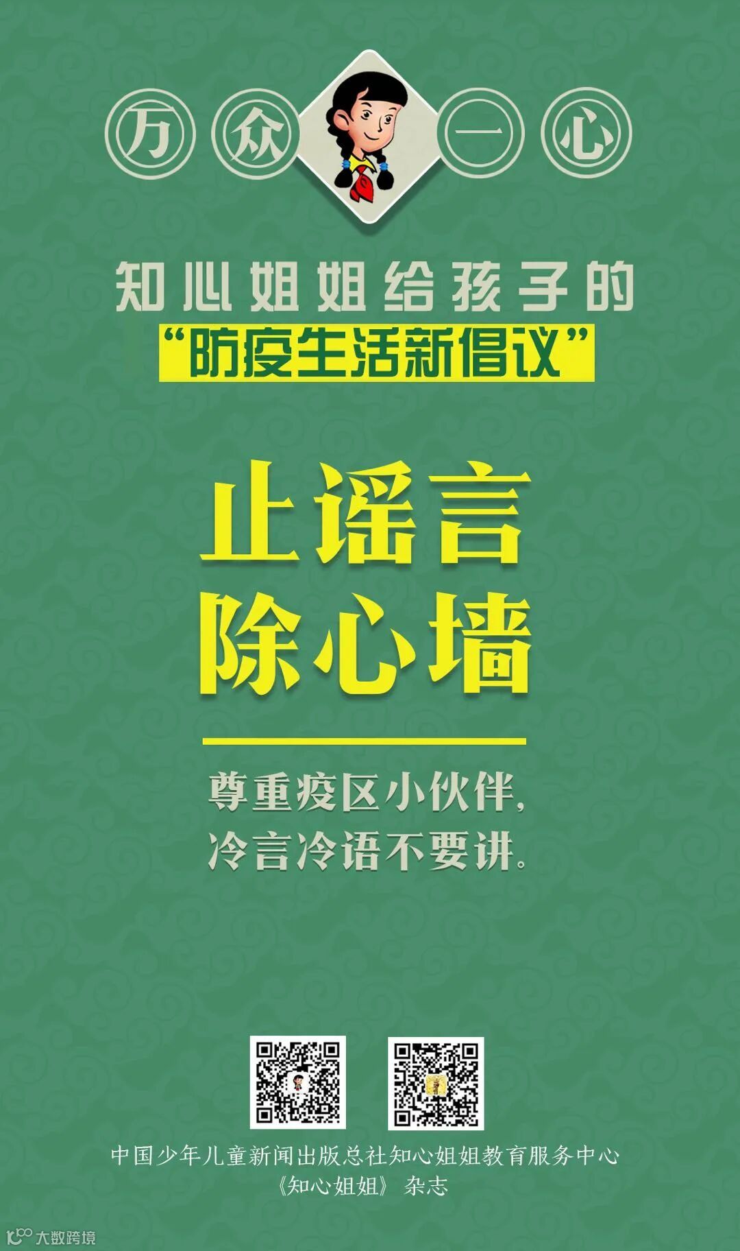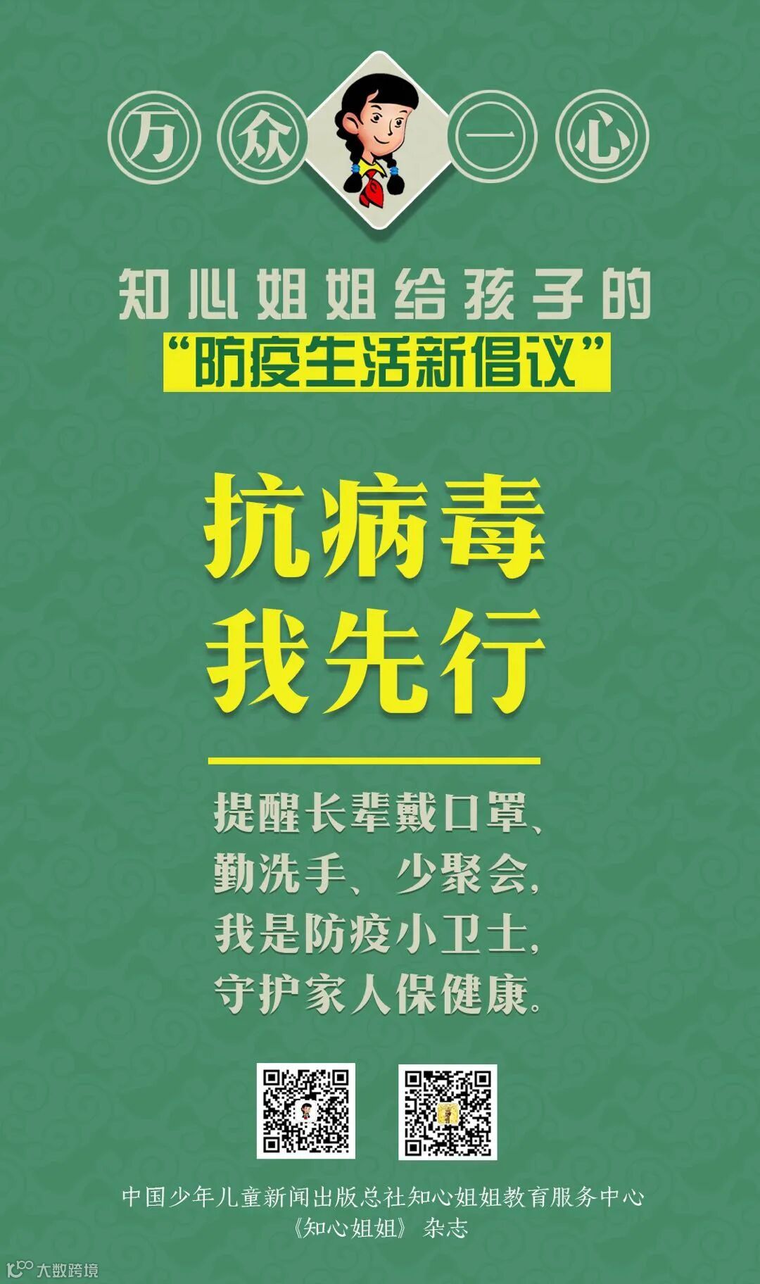 为了让小朋友们更快、更轻松的学习防疫知识,中国少年儿童新闻出版总社知心姐姐等人,共同创作了相关疫情的防疫童谣和系列海报。爸爸妈妈们快点看过来,带着家里的小朋友们,学习这些简单好记的防疫知识吧!