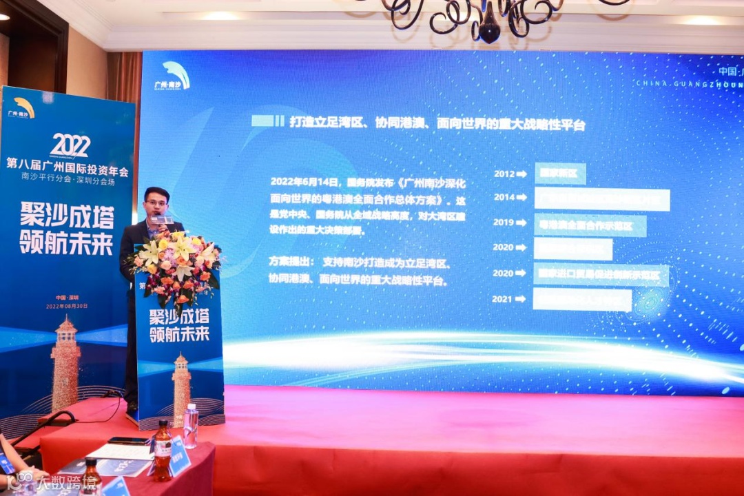 8月30日,由广州市南沙区投资促进局主办的2022年第八届广州国际投资年会南沙平行分会(深圳分会场)在深圳市开展,通过线下互动交流和线上连线各驻点的分会场两种方式并行。