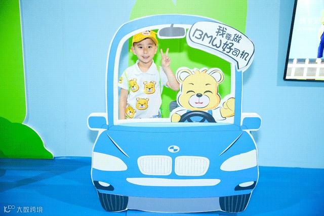 这里有丰富有趣的拍照框,孩子们和家长们可以选择自己喜欢的拍照框拍照留念,许下承诺,将来我们都要做文明有礼的“BMW好司机”。