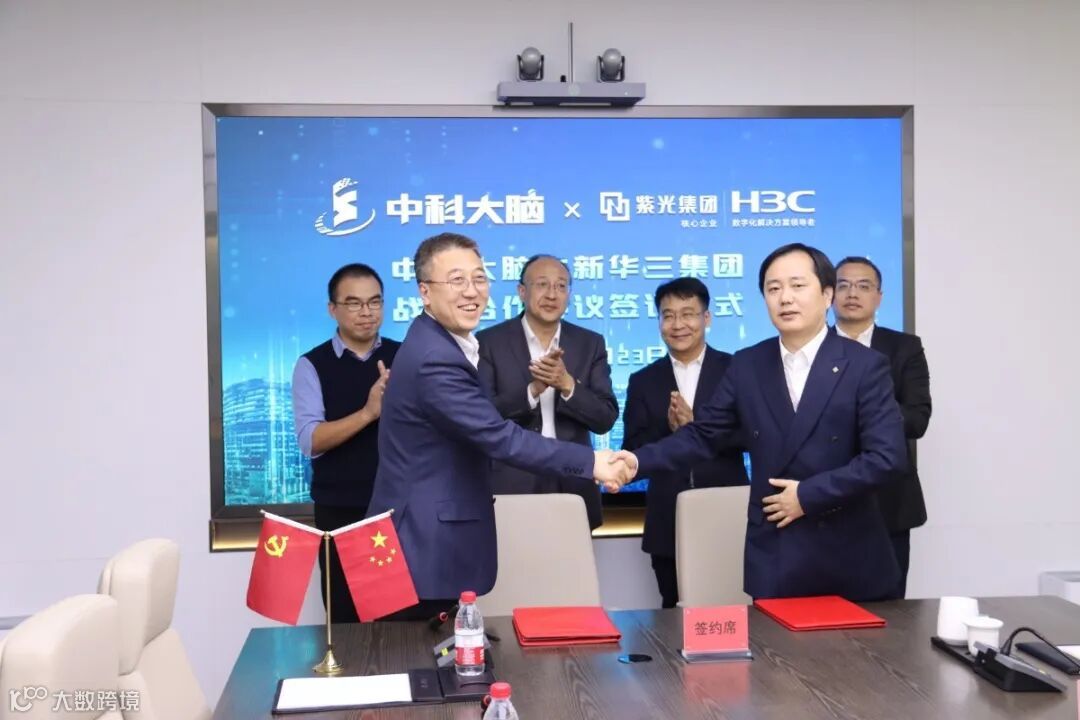 10月23日,中科大脑与紫光股份旗下新华三集团在海淀科技大厦举行《战略合作协议》签订仪式,双方将在智慧城市领域展开全方位的战略合作。