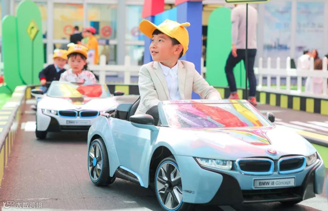 五彩斑斓的BMW儿童交通安全体验区充满了欢声笑语