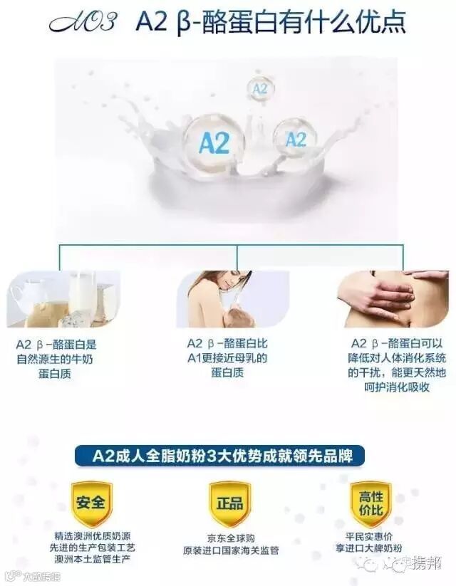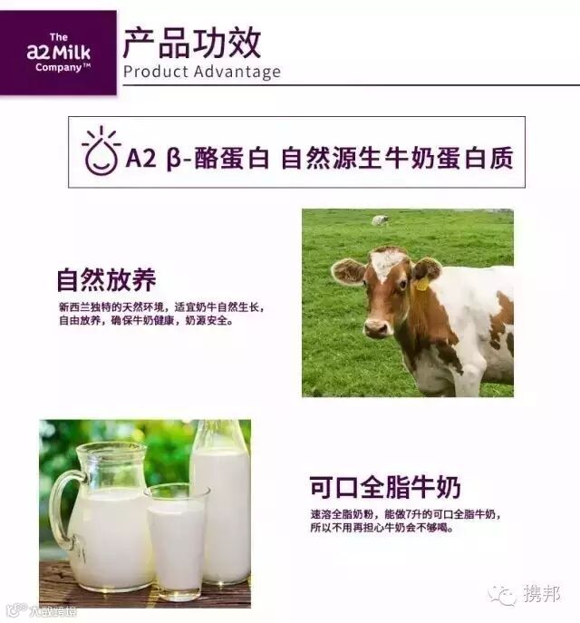 1)全球独一无二的A2奶源的成人奶粉。只含有自然源生的A2 β-酪蛋白,好消化、易吸收,不容易腹泻、乳糖不耐受等