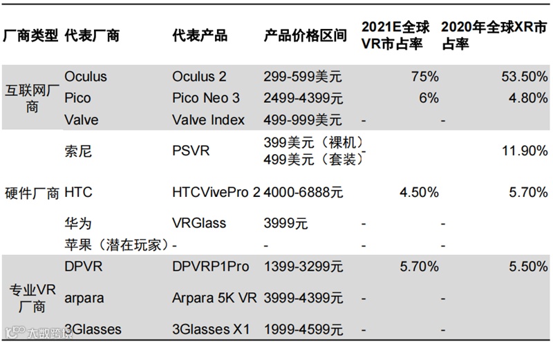 ▲VR竞争格局:互联网厂商、手机厂商和专业VR厂商