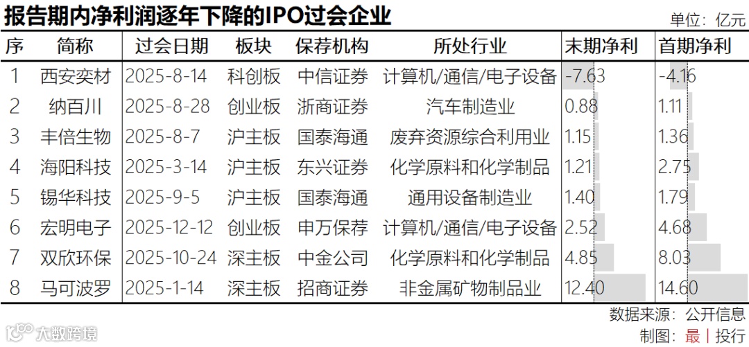2025年有8家过会企业最近三年的净利润持续下降,这一比例占到所有企业的7%