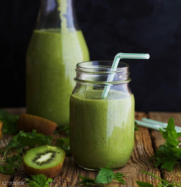 4.将打好的果蔬汁倒入杯中,可以加上淡奶油做装饰,减肥的MM也可以喝。