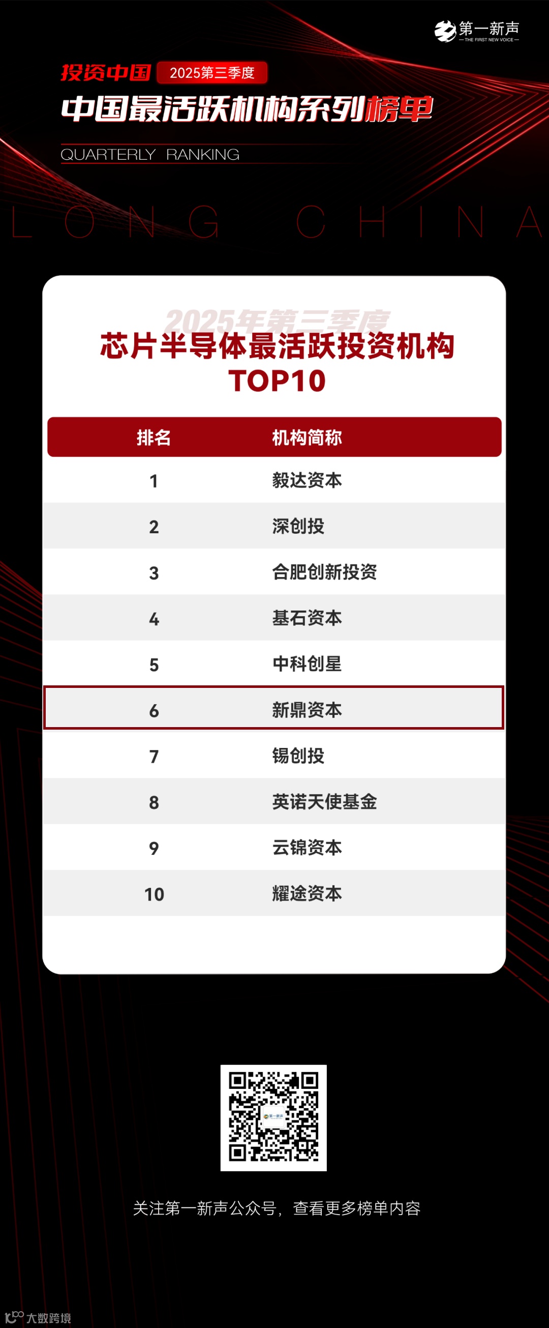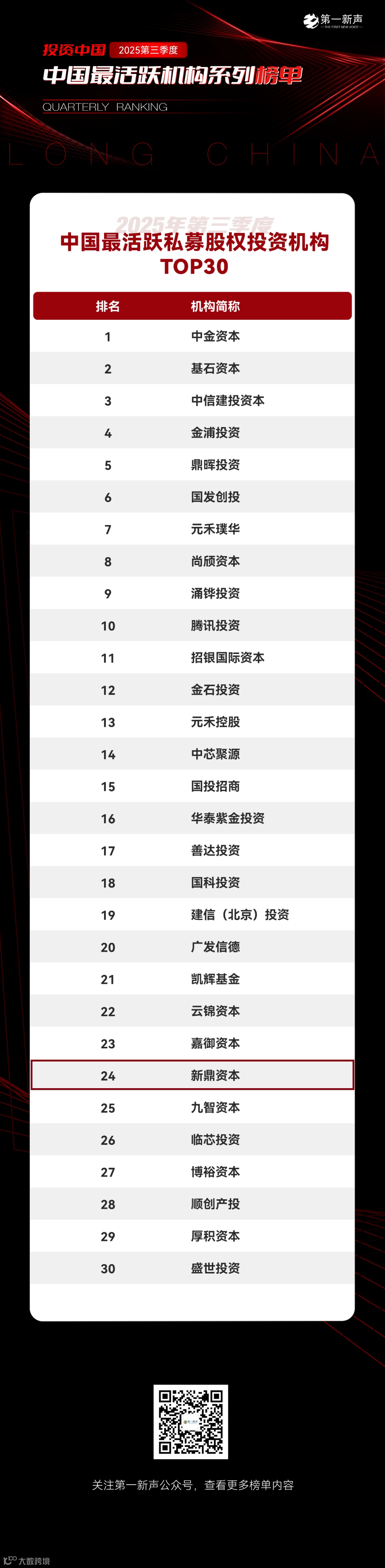 新鼎资本荣登投资中国2025年第三季度中国最活跃私募股权投资机构TOP30等两大榜单
