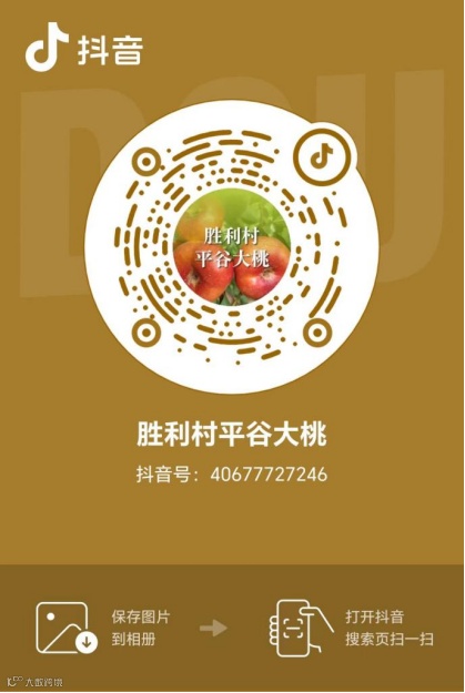 同时,欢迎大家关注胜利村官方的抖音号“胜利村平谷大桃”,会不定期直播,可以在上面了解更多平谷鲜桃知识,了解田间地头的桃农生活,同时也会看到智能院派驻胜利村第一书记的日常驻村分享。