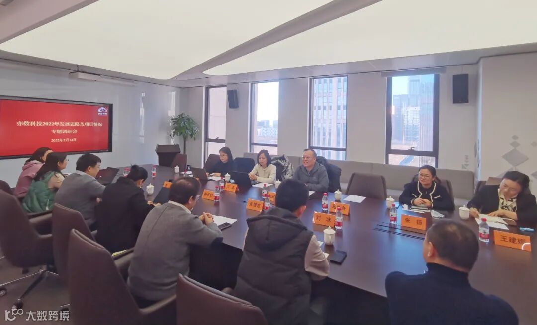 2022年2月14日,智能院党总支书记、董事长赵延标一行前往亦数科技公司,围绕亦数科技公司2022年市场化发展思路进行专题调研,亦数科技公司介绍了自成立以来积累的核心竞争力及市场化资源,围绕进一步推动市场化发展指出困难问题并提出建议。
