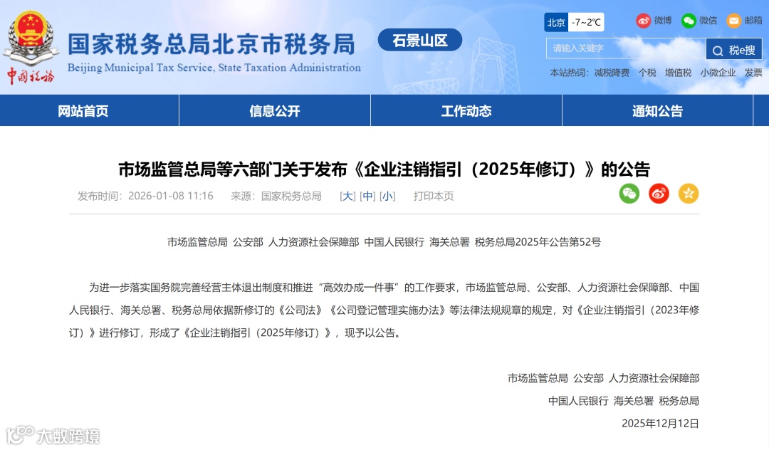 政策更新!市场监管总局等六部门修订发布《企业注销指引》,直指企业注销的三大核心环节 —— 清算责任、办理流程、法律后果。这些调整,将直接影响企业注销的效率与合规性!