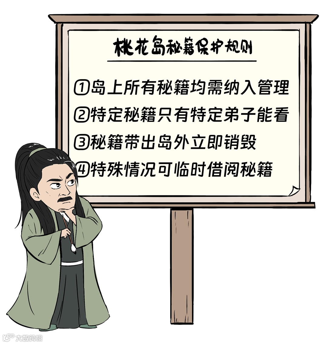 任何人不能把秘籍带出岛外,即便是跟老朋友切磋交流,秘籍也要“阅后即焚”。