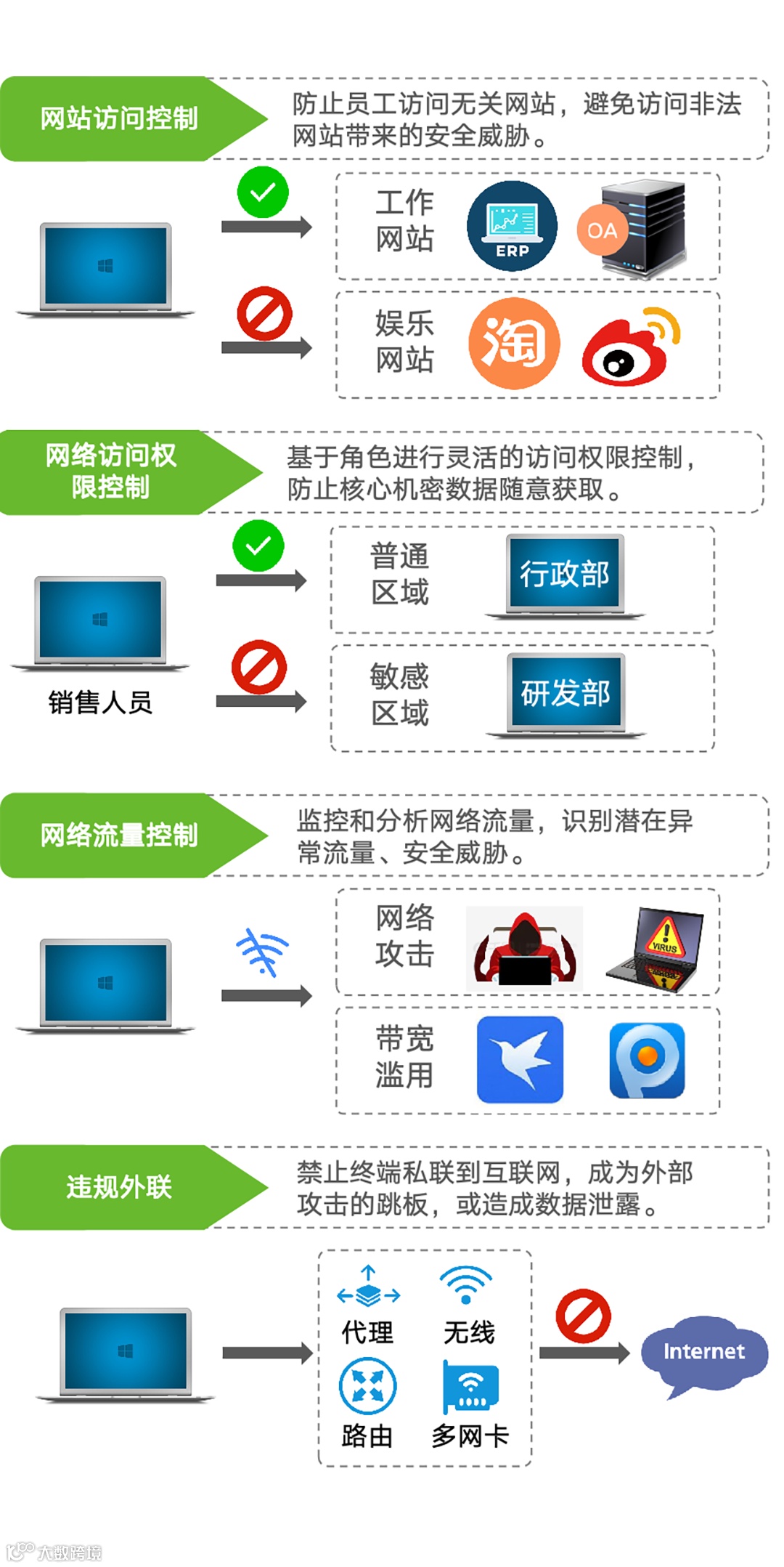 同时,针对终端进行软件应用统一化管理,如软件安装和使用管控,推动合规落地,提高工作效率。