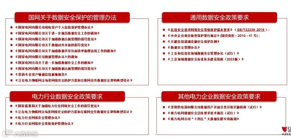 国家能源局明确指出:要加快能源产业数字化智能化升级,推动能源基础设施数字化。同时要完善能源风险应急管控体系,强化重要能源设施、能源网络安全防护。同时,国家电网颁布一系列数据安全管理指导意见,针对电力行业,《国家能源局关于加强电力行业网络安全工作的指导意见》《泛在电力物联网全场景网络安全防护方案和互联网业务数据安全架构典型设计》《电力行业网络安全管理办法》《电力行业网络安全等级保护管理办法》等政策也提出明确要求。