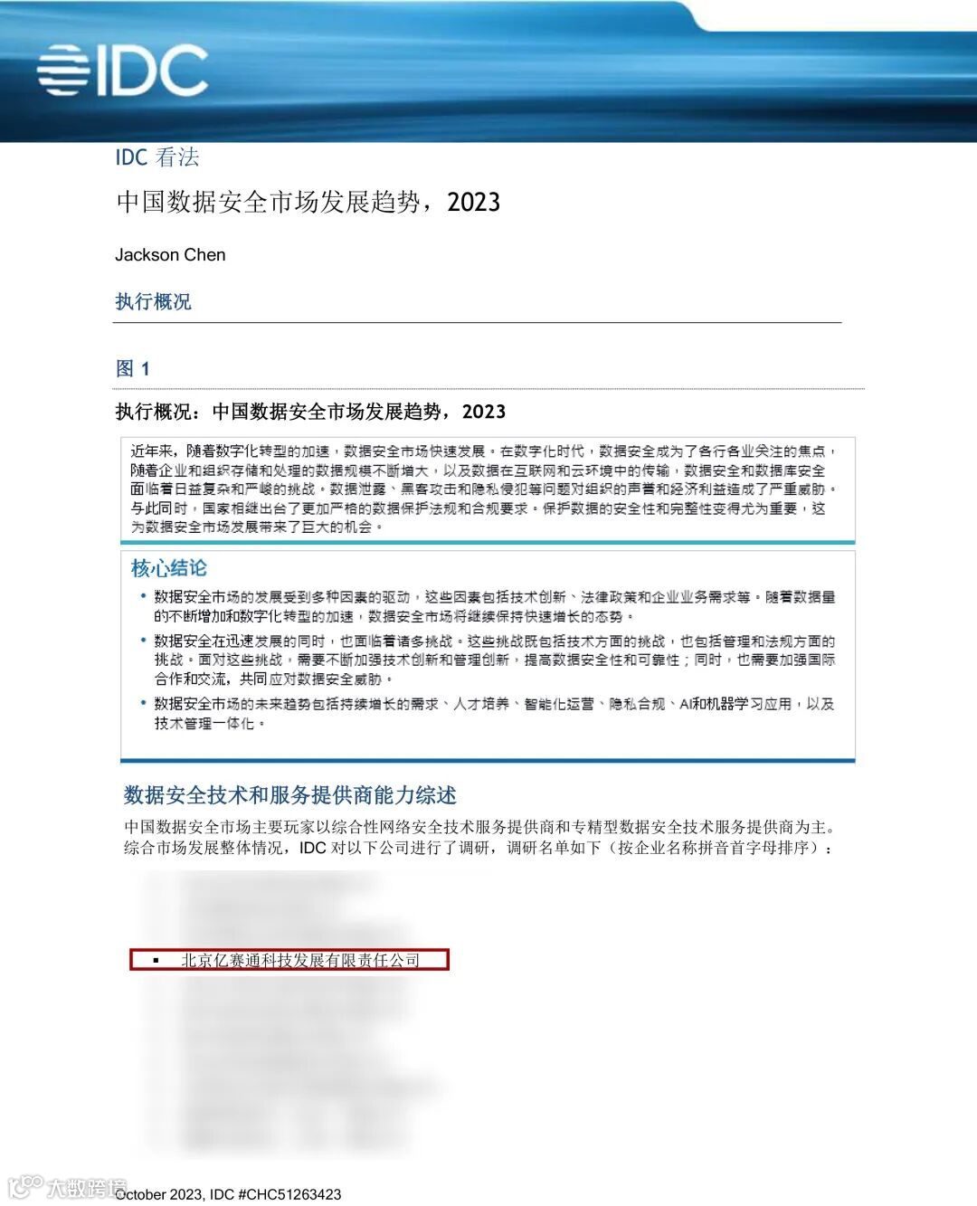 对此,全球著名数据公司IDC特别针对中国数据安全市场,推出了《IDC 中国数据安全市场发展趋势,2023》报告(以下简称报告),通过对国内综合型安全公司、专业型安全服务提供商进行研究,综合产品体系、技术、架构等方面的分析。而亿赛通,通过最新更新的产品架构,细分的五大产品类别,形成综合数据安全解决方案。本次报告亿赛通凭借着出色的技术创新能力以及良好的市场口碑,顺利通过IDC审查小组的层层审核,成功入选报告专业推荐厂商之一。
