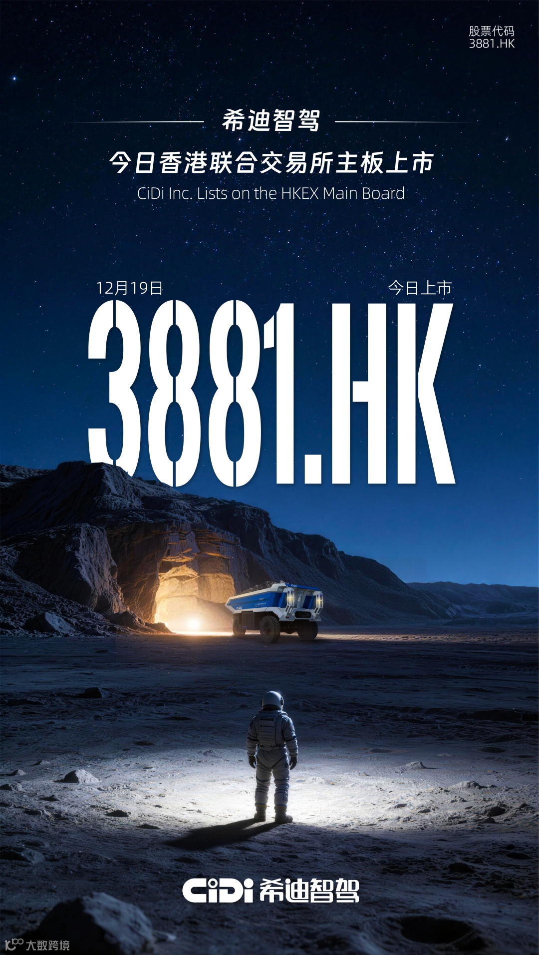 2025年12月19日,希迪智驾(03881.HK)正式登陆香港联合交易所主板,成为港股首家专注于商用车智能驾驶的上市公司,同时也是第七家通过港交所18C章规则上市的特专科技企业。