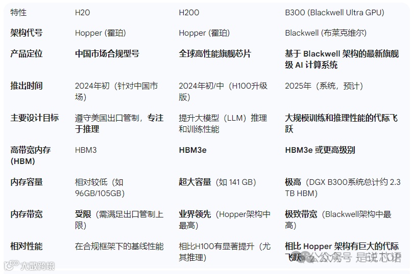 对比表:H20 H200 B300