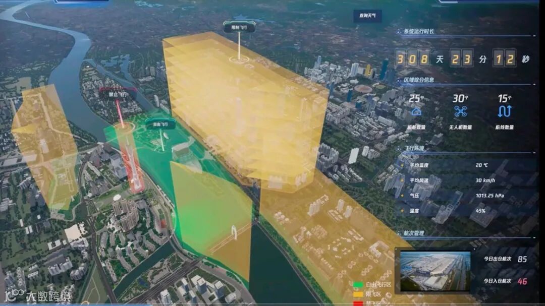 一个支撑即以数字孪生底座为支撑,建立城市实体和低空环境全空间映射,形成全要素可视化的3D动态数字化空域管理体系,为全空域规划、全方位协同提供底层支撑。六分科技可计算空域算法支持统一的北斗三维网格码对空域进行时空划分,实现多架次多路径的规模化统筹调度,构建起“监测-预警-响应”闭环管理体系。