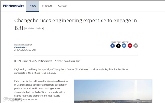 近日,《中国日报》以《Changsha uses engineering expertise to engage in BRI》(《长沙以工程技术专长深度参与“一带一路” 建设》)为题,报道了希迪智驾在沙特的业务进展,不仅被《Mobadara Arabiya》等阿拉伯国家主流媒体转载,还获美通社等海外媒体积极转发,引发广泛关注。