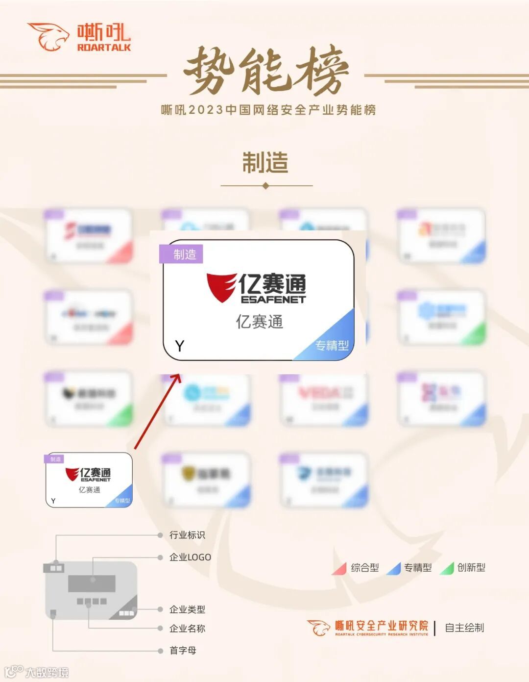 近日,嘶吼安全产业研究院发布《2023中国网络安全产业势能榜》评选结果,亿赛通凭借行业先进的技术优势、产品的创新能力和成熟的行业标杆案例打造能力,在百余家调研企业中脱颖而出,作为“专精型”厂商荣登制造行业势能榜单。