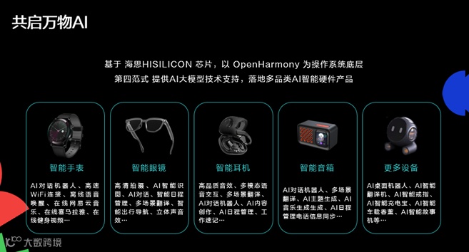 俞晖透露,基于OpenHarmony+海思芯片,还有第四范式强大的端侧能力,公司已经实现了有效落地,开发出智能手表、智能眼镜、智能耳机、智能音箱等一系列AI智能硬件产品。同时,不止于此,未来还将有无限可能的新品类陆续问世。