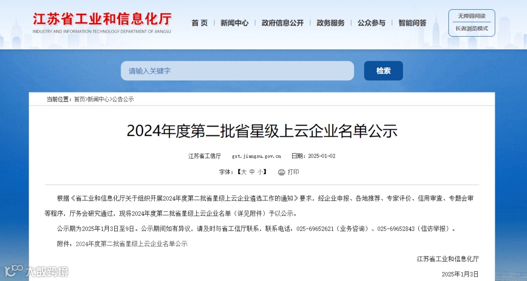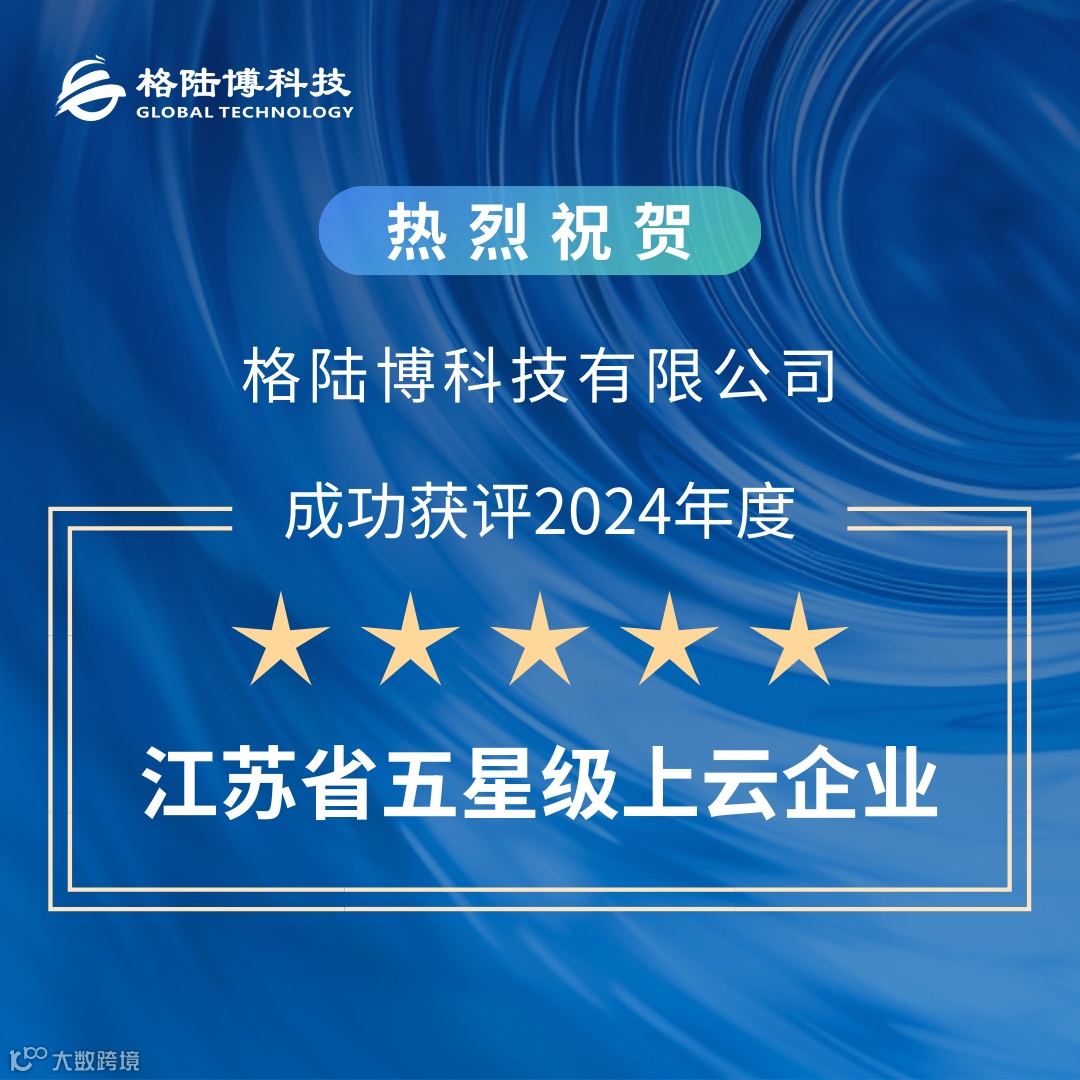 近日,格陆博科技有限公司荣耀登榜2024年度江苏省“五星级上云企业”拟认定名单,继2022年荣获四星上云企业称号后,再获殊荣,实现星级跃升。