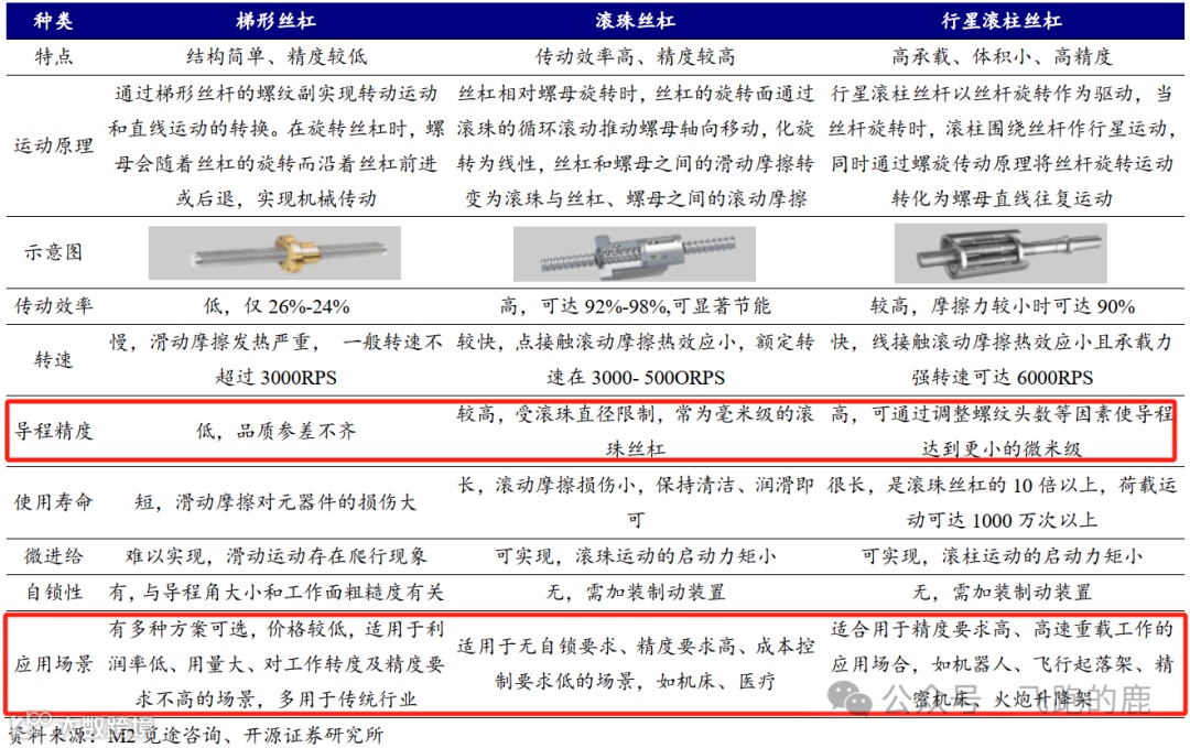 ,行星滚柱丝杠应用尚少,占比约4%