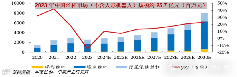 ,梯形丝杠占比约35%