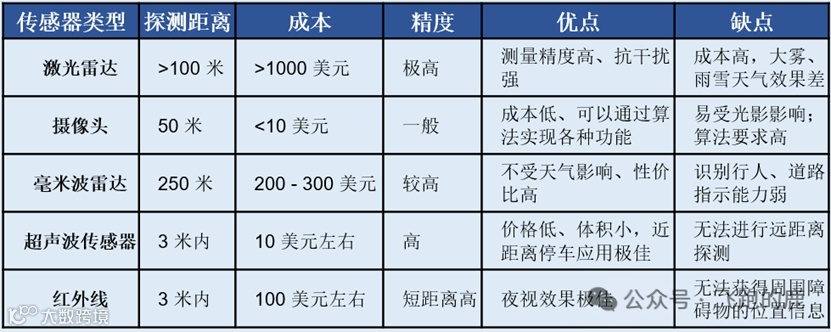 激光雷达、摄像头、毫米波雷达、超声波传感器、