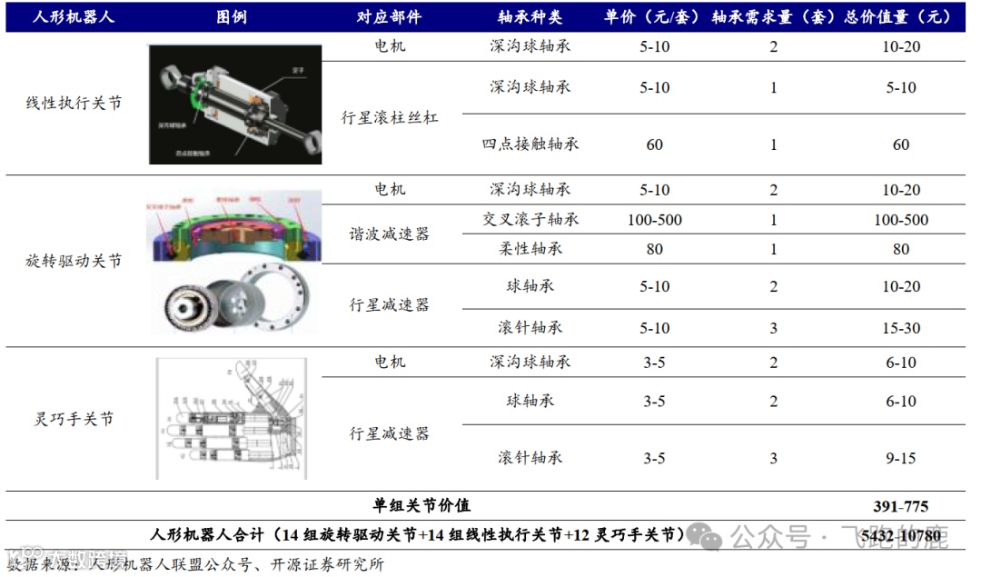 单台人形机器人轴承价值量预计在5432-10780