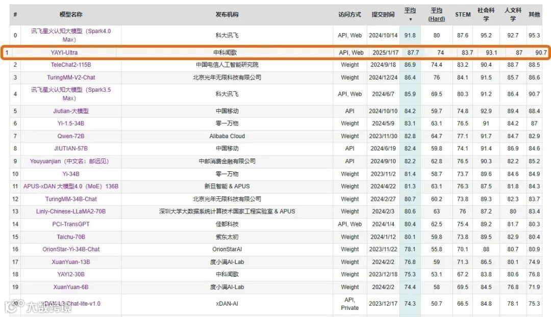C-Eval中文大模型评测(公开访问榜)