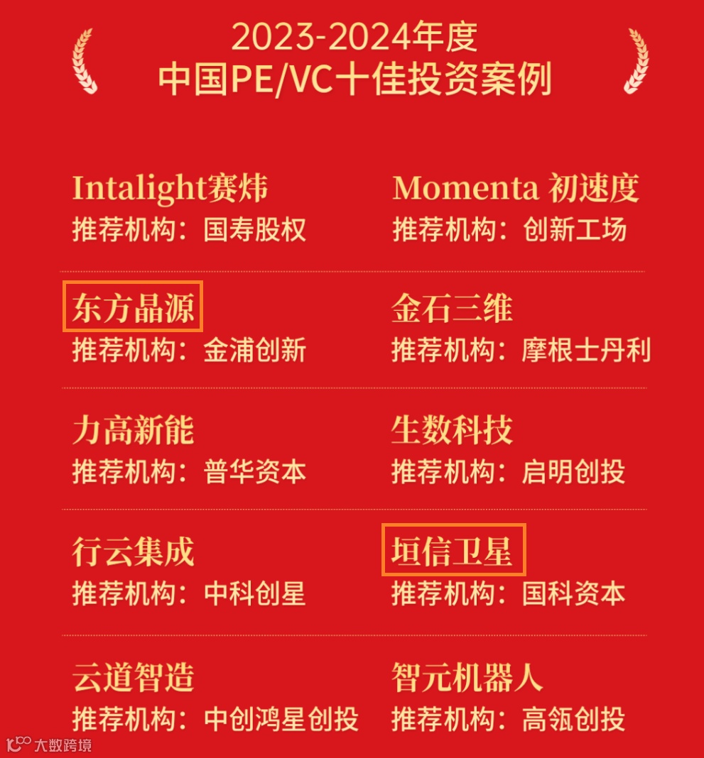 新鼎资本荣登“2023-2024年度中国商业航天领域活跃投资机构十强”榜单,已投项目东方晶源、垣信卫星荣膺“2023-2024年度中国PE/VC十佳投资案例”。