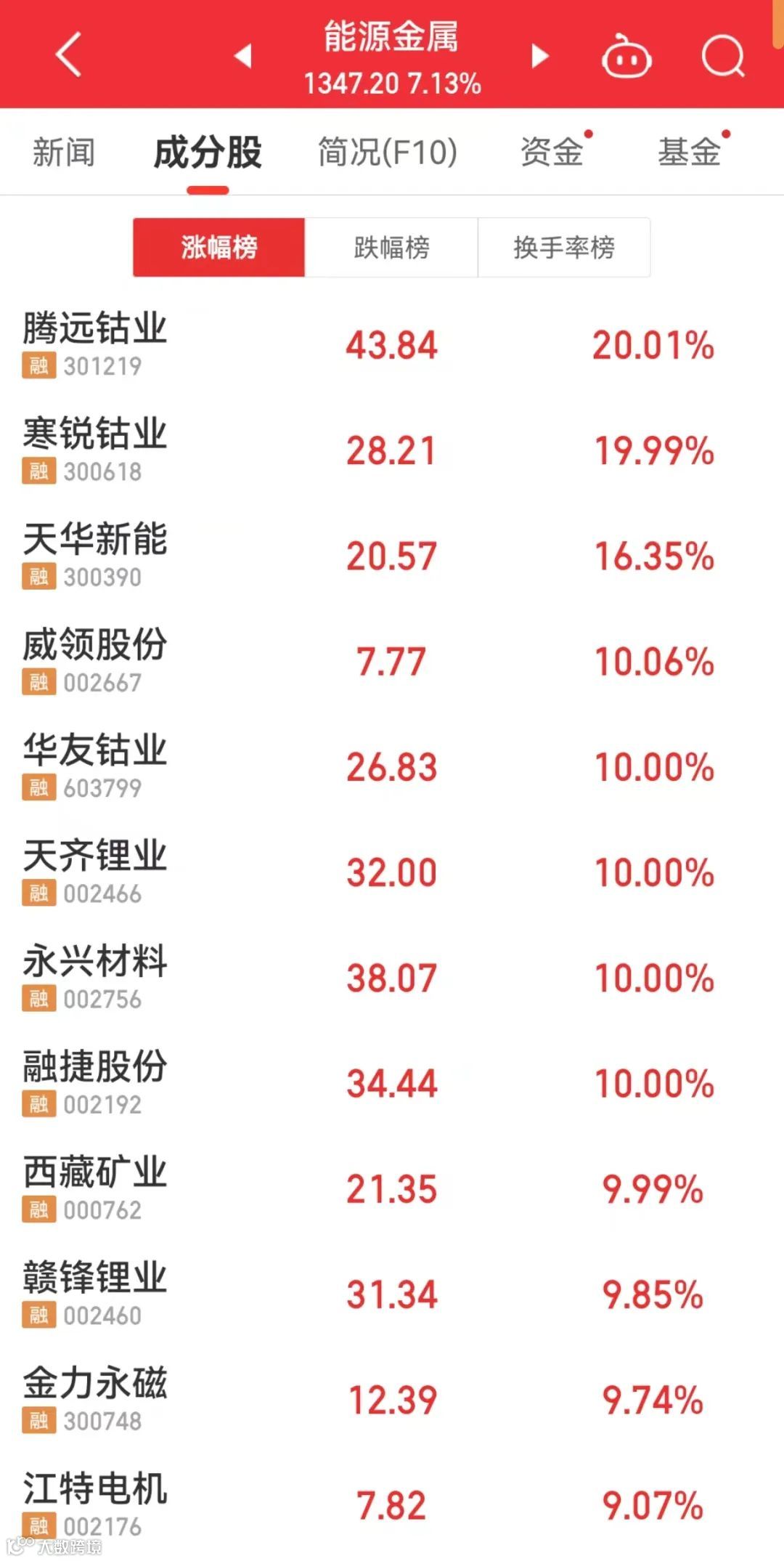 今天,A股多个赛道爆发。能源金属板块集体上涨,镍、钴、锂概念大涨,寒锐钴业、威领股份、华友钴业、天齐锂业涨停。