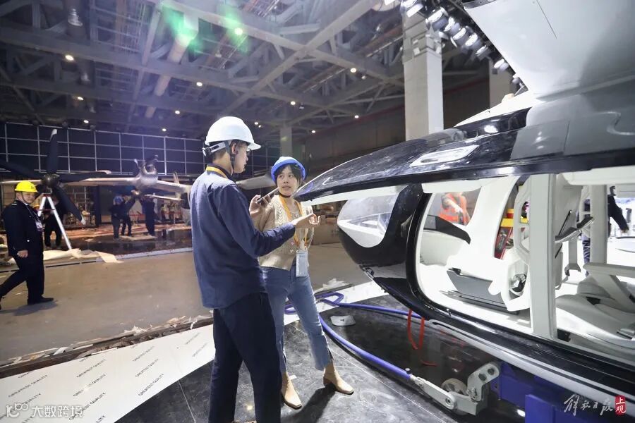 首次亮相进博会的TCab Tech,展示自主研发的E20倾转旋翼载人电动垂直起降飞行器。