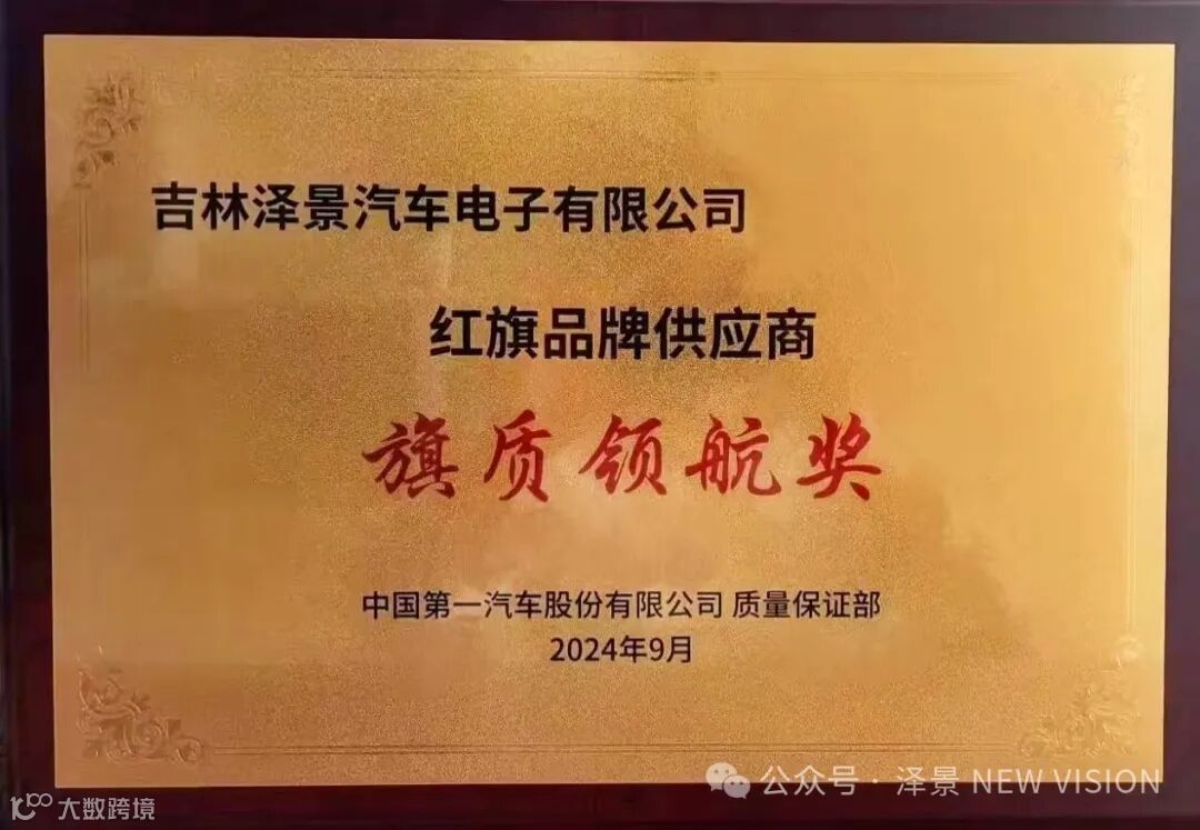 2024年9月30日,泽景荣获红旗质量最高奖-旗质领航奖。泽景作为红旗品牌HUD的供应商,此次获奖不仅肯定了泽景在产品质量方面的高度要求,同时也是泽景在视觉交互领域的持续发展的有力证明。